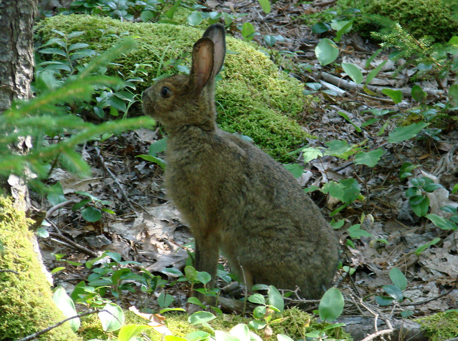 The snowshoe hare is not a rabbit and cannot breed with true rabbits. A few European rabbits have adapted to life in the wild in Nova Scotia and can be seen near some human settlements. These are described as “feral” animals which means that although they are domestic animals they have adapted to living under wild conditions.