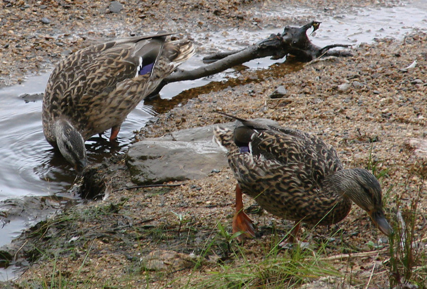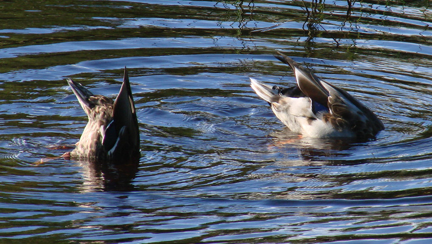 “Dabbling” is characteristic of both Mallards and Black Ducks. It is fun to watch the way they stick their tails in the air so as to feed on the bottom of the lake. Young Black Ducks eat mostly aquatic insects and other invertebrate animals found in lake sediment while adults eat more plant than animal matter.