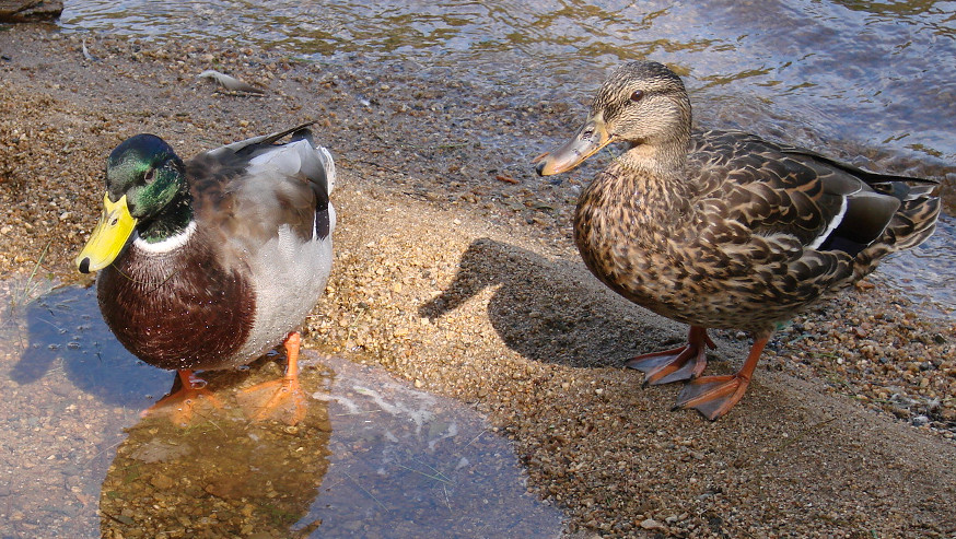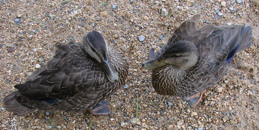 It is easier to see the difference between the sexes of Mallards than Black Ducks because the male is relatively showy with its green head and white collar.