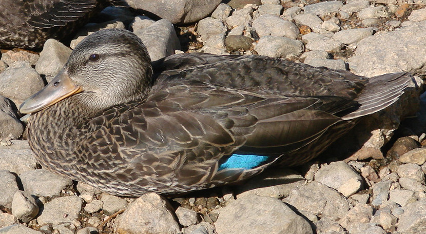 Male and female black ducks are very similar in appearance except for their beaks. Adult males have yellow-green beaks while the female beak is relatively dull.